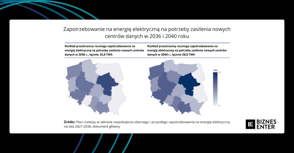 - Dowód. Według Polskich Sieci Elektroenergetycznych (PSE) do 2036 r. łączna moc centrów danych w Polsce ma wzrosnąć do 3 093 MW, a w 2040 r. osiągnąć 5 018 MW. Oznaczałoby to odpowiednio wzrost zużytej energii do 17,4 TWh i 29,4 TWh.