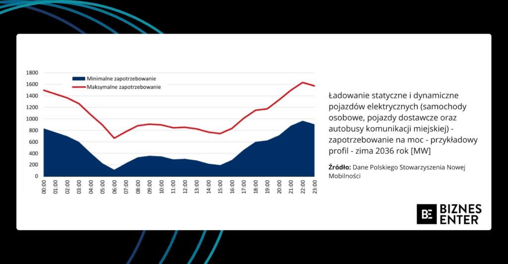Rosnąca liczba pojazdów elektrycznych oznacza nie tylko większy wolumen zużywanej energii, lecz także zmianę profilu dobowego zapotrzebowania na prąd. Dlaczego? Ponieważ należy w nim uwzględnić pory ładowania dużej liczby pojazdów. Z racji na rytm dnia masowe ładowanie „elektryków” może pokrywać się z porami, w których KSE pracuje na największych obciążeniach.