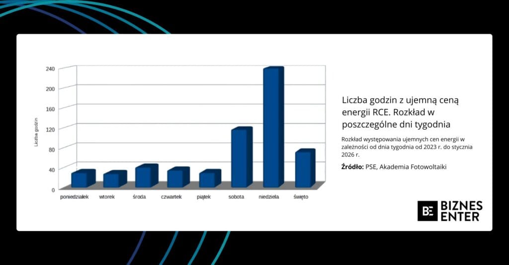 Eksperci wskazują na wyraźny wzrost zjawiska ujemnych cen. W 2023 r. zarejestrowano jedynie 32 godziny z ceną poniżej zera. Rok później liczba ta wzrosła do 199 godzin, a w 2025 r. osiągnęła już 352 godziny. Trend utrzymał się także na początku 2026 r., w którym mimo mroźnego stycznia, odnotowano kolejnych 10 godzin z ujemnymi stawkami. Pokazuje to, że zjawisko ujemnych cen energii nie ogranicza się tylko do określonych pór roku.