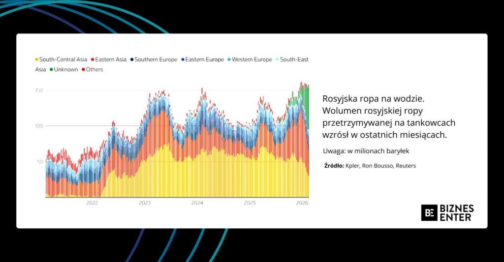 Możliwości składowania są jednak ograniczone. Według szacunków firmy Kpler łączna pojemność zbiorników lądowych i rurociągów w Rosji może sięgać około 100 mln baryłek. Część tego potencjału jest już jednak w użyciu. Oznacza to, że jeśli eksport pozostaje ograniczony przez sankcje, magazyny zaczną się szybko zapełniać.