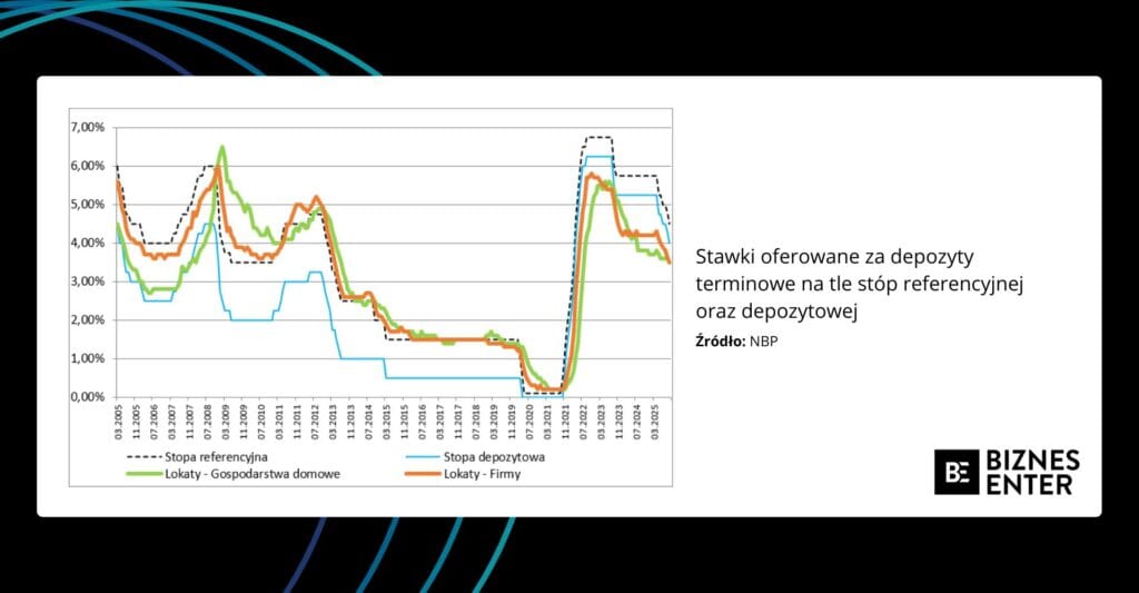 Dzięki danym publikowanym przez Główny Urząd Statystyczny w Biuletynie Statystycznym mamy też rozeznanie, jak banki płacą za depozyty gospodarstwom domowym i przedsiębiorstwom – w rozbiciu na rachunki bieżące i lokaty terminowe.