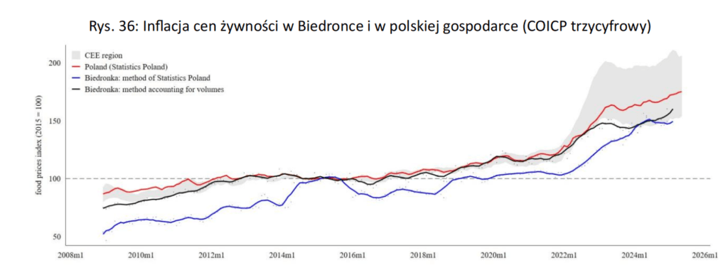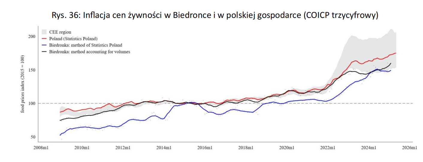 Zestawienie obu metod pomiaru przynosi fascynujące rezultaty. W okresie ostatniej dekady ceny w Biedronce rosły w tempie zauważalnie wolniejszym, niż wynikałoby to z ogólnokrajowych wskaźników GUS. Dlatego też ceny żywności w kraju są jednymi z najniższych w całym regionie.