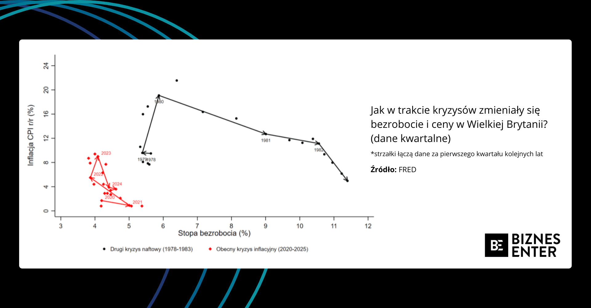 W Wielkiej Brytanii przebieg dezinflacji, jeśli chodzi o skalę towarzyszących jej kosztów, również odróżnia się od wcześniejszych epizodów inflacyjnych. W trzecim kwartale 2022 r. inflacja CPI sięga 9,4 proc. rdr., a stopa bezrobocia utrzymuje się na poziomie 4 proc.. Dokładnie dwa lata później inflacja spada do 3,4 proc. rdr., a bezrobocie jedynie nieznacznie wzrasta do 4,5 proc. Ponownie w trakcie drugiego kryzysu naftowego wyglądało to zgoła inaczej. W drugim kwartale 1980 r. inflacja cen towarów i usług wynosi 21,5 proc. rdr. przy bezrobociu na poziomie 6,4 proc. Po kolejnych dwóch latach inflacja rzeczywiście spada do 9,4 proc. rdr., lecz odbywa się to kosztem gwałtownego wzrostu bezrobocia, które sięga już 10,7 proc.