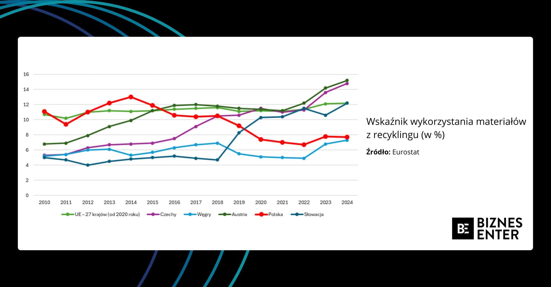 - Teza. Polska notuje stały regres we wskaźniku wykorzystania materiałów z recyklingu (CMU). To sprawia, że polscy eksporterzy będą przegrywać nie jakością, lecz brakiem dostępu do recyklatu.