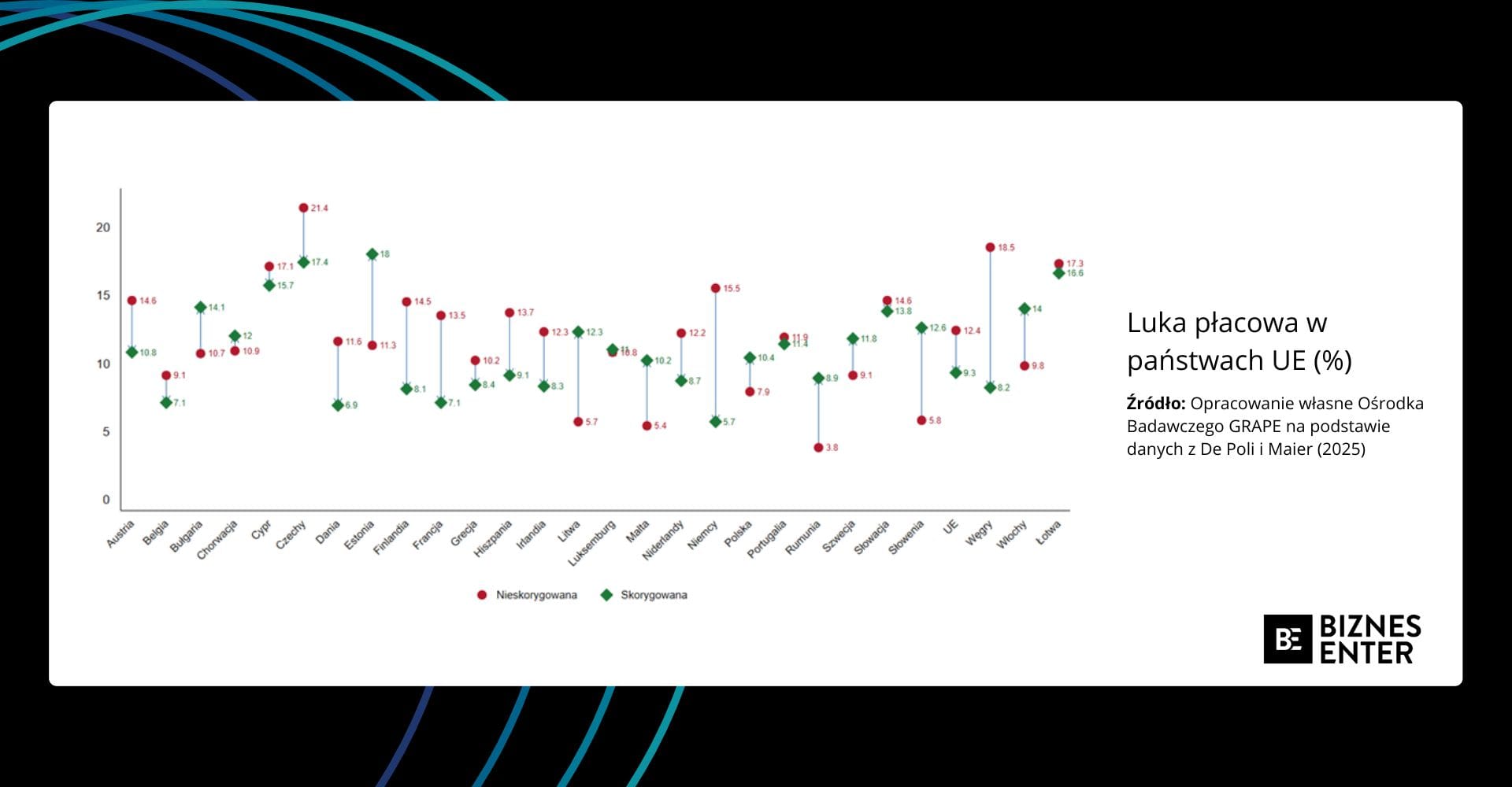 Na pierwszy rzut oka luka płacowa ze względu na płeć w Polsce nie wydaje się wysoka. Problem w tym, że tzw. nieskorygowana luka płacowa niewiele mówi o potencjalnej dyskryminacji kobiet na rynku pracy – pisze dla Biznes Enter Adam Suraj z Ośrodka Badawczego GRAPE. Analityk zwraca uwagę, że więcej o tym problemie mówi skorygowana luka płacowa, która w Polsce jest na wyższym poziomie, niż wynosi średnia dla Unii Europejskiej.